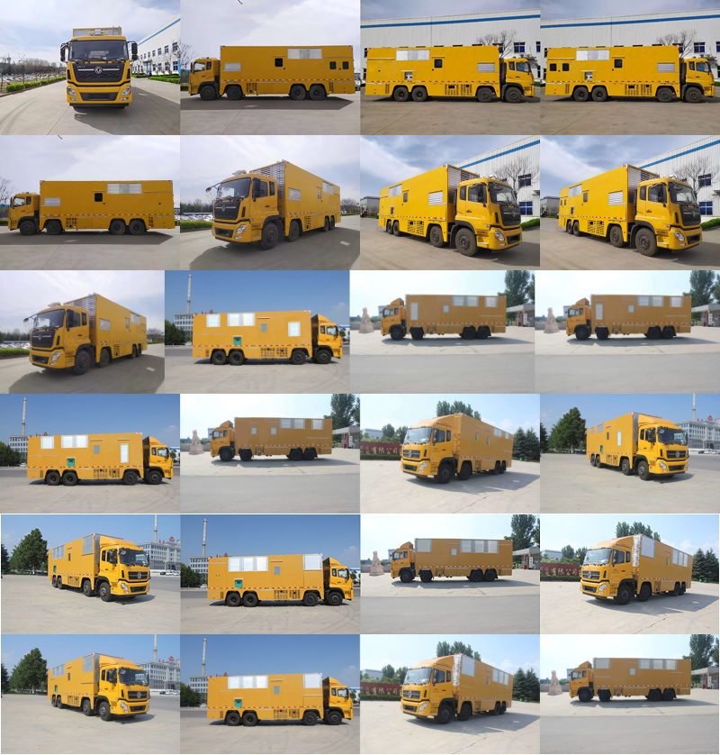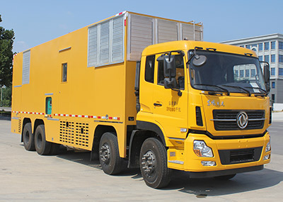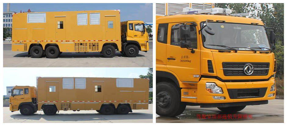 | 备注 | 车厢顶部密封不可开启,仅采用1850+4600+1350轴距。仅采用钢板弹簧的悬架形式。选装800KW发电机组,驾驶室内成员2人时,整备质量为30370kg,驾驶室内成员3人时,整备质量为30305kg。选装1000KW发电机组,驾驶室内成员2人时,整备质量为30870kg,驾驶室内成员3人时,整备质量为30805kg。选装1000KW机组时长度11985mm,对应后悬2685mm;侧防护为裙板式结构,材料为热轧钢板Q235-A,下缘离地高度475mm;后防护由车身结构代替,材料为热轧钢板Q235-A,下边缘离地高495mm。安装带卫星定位功能的行驶记录仪,ABS型号为3631010-C2000;,生产厂家为东科克诺尔商用车制动系统(十堰)有限公司。选装不带导流罩,选装升降照明灯,选装厢体门的数量和位置。该车主要由汽车底盘、车厢、发电机组、进风降噪装置、排风降噪装置、机组排烟装置、辅助液压支撑装置、电动电缆绞盘装置、车厢内部照明装置、车载监控装置等组成,可以解决供电设备损坏、地震等重大自然灾害的临时应急电力抢修,也可用于执行救灾任务。 | ||