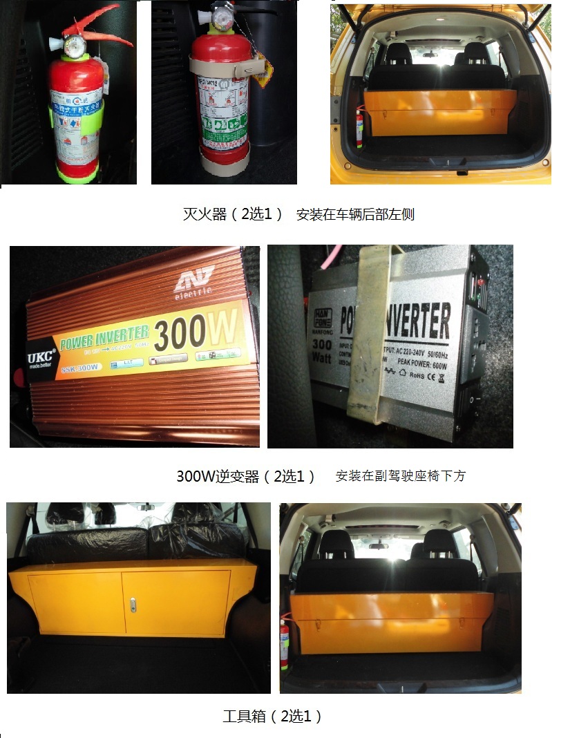 | 备注 | 装备灭火器,工具箱,300W逆变器工程作业用专用设备.选装移动电缆盘,搜索灯,锥筒。选装不同规格前照灯、后视镜、侧转向灯。选装昼间行驶灯、前摄像头、后摄像头、尾翼、前泊车雷达时,总质量下前后轴荷分配1100/1300。ABS型号/生产企业:5KSC/大陆泰密克汽车系统(上海)有限公司。发动机最大净功率为122kW。 | ||