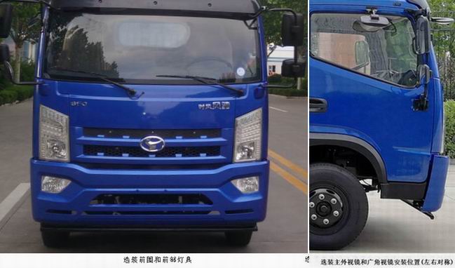 | 备注 | 防护装置材质为Q235,后下部防护装置截面高×宽为30×130,离地高度为465mm;ABS系统型号/厂家: XN-3730601/济南鑫宁汽车配件有限公司,CM4XL-4S/4M/广州瑞立科密汽车电子股份有限公司;选装排半驾驶室;选装不同外观的货箱;单排驾驶室对应货箱内部尺寸长为4190,货箱内部尺寸高为550和510;排半驾驶室对应货箱内部尺寸长为3820,货箱内部尺寸高为550和510;外形尺寸宽2250对应货箱内部尺寸宽为2150和2050;外形尺寸宽2300对应货箱内部尺寸宽为2200和2100,外形尺寸宽2400对应货箱内部尺寸宽为2300和2200,单位为mm;4DX23-120E5、WP3.7Q130E50、YN38CRE1和4DX23-140E5发动机对应的油耗值为18.5、18.2、17.9和18.5L/100km;选装新前围和前部灯具 | ||