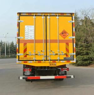 | 备注 | 厢体顶部封闭,不可开启;厢体可选装单侧门;车身侧面及后部粘贴橙色反光标识和爆炸品菱形标示,在车体后部设置安全标示;危险货物运输车辆的车辆类型EX/Ⅲ;用于运输具有独立包装的黑火药,压缩黑火药,电引爆雷管,爆破炸药,点燃导火索,硝胺炸药,烟花制品,类项号:1.1 D,1.1D,1.1B,1.1 D,1.4G,1.1 D,1.1 G;该车安装具有卫星定位功能的行驶记录仪;防护装置材料为Q235,与车辆连接方式为螺栓连接;后防护断面宽100×50mm,离地高500mm;ABS系统控制器型号为VIE ABS-II,ABS系统控制器生产企业为浙江万安科技股份有限公司;仅用子午线轮胎;仅用底盘限速装置和前盘制动器;仅选用底盘的排气管前置;前置油耗对应:SC4H180Q5(27.1);随底盘选装相关附件;随底盘调整前后轴荷 | ||