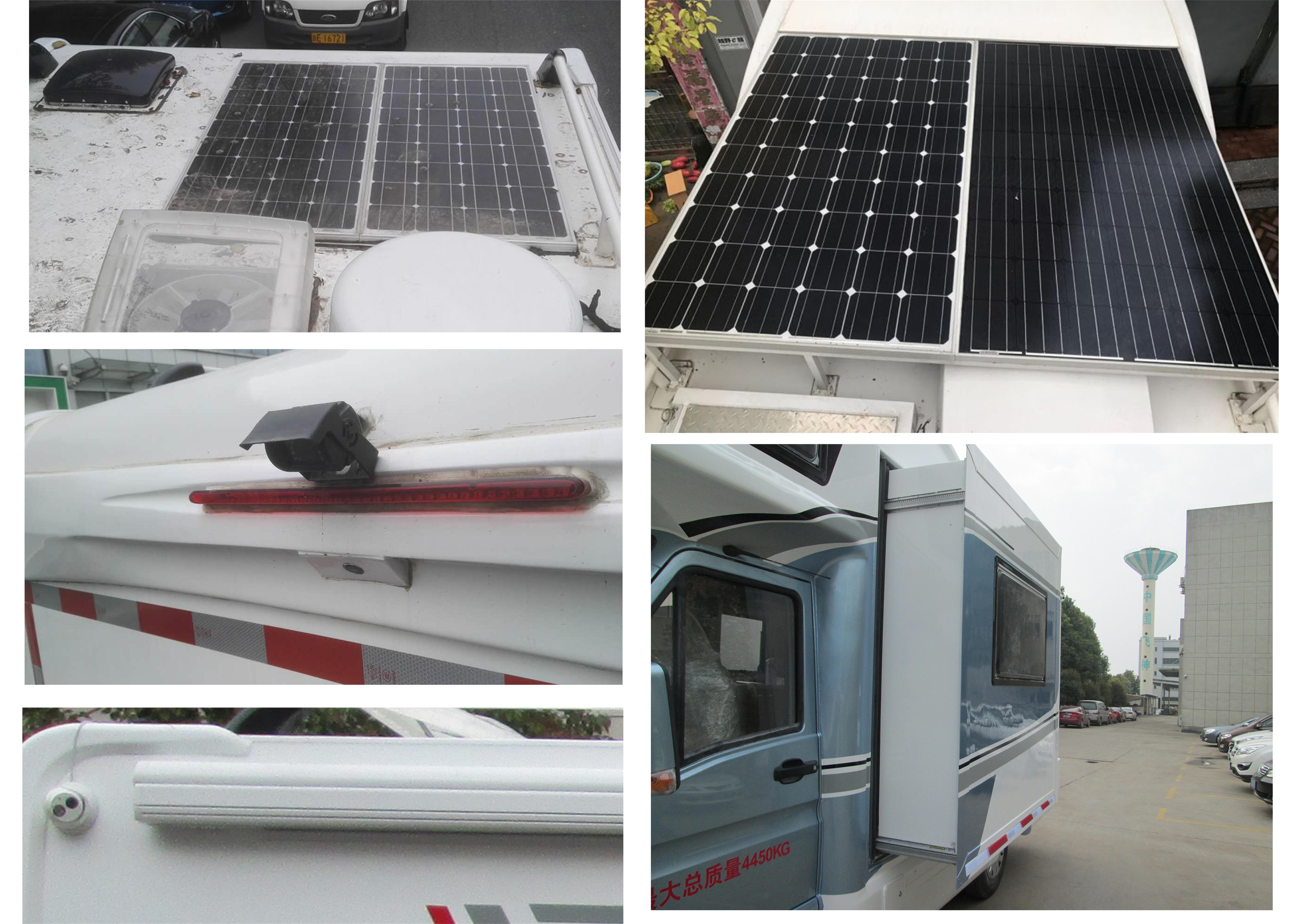 | 备注 | 1,车厢顶部封闭,不可开启,侧后防护为裙边结构;2,配备厨具总成,睡具总成,卫生间总成,液晶屏等旅居生活娱乐专用装置;3,选装遮阳棚和摄像头,左侧选装拓展厢体,顶部选装顶置空调,卫星接收器,车顶行李架,天窗,选装太阳能电池板,倒车摄像头;4,不安装遮阳棚和摄像头时车宽为2200mm,选装遮阳棚车宽为2288mm,选装遮阳棚和外置摄像头和仅选装外置摄像头对应的车宽为2350mm;5,可选装其他形式的前顶造型,后围造型,后部灯具造型,可选装后部车窗,后部行李舱,选装前顶天窗,车体左右窗户数量和位置可以调整,可选装其他形式的侧窗,舱门,不引起车身外廓尺寸变化;6,可以增加选装件选择减少人数,乘员数为3,4,5,6人时整车整备质量3880kg,成员数为2人时整车整备质量3960kg;7,随底盘安装ABS,ABS系统控制器型号:BOSCH ABS8,ABS系统控制器生产企业:博世汽车部件(苏州)有限公司. | ||