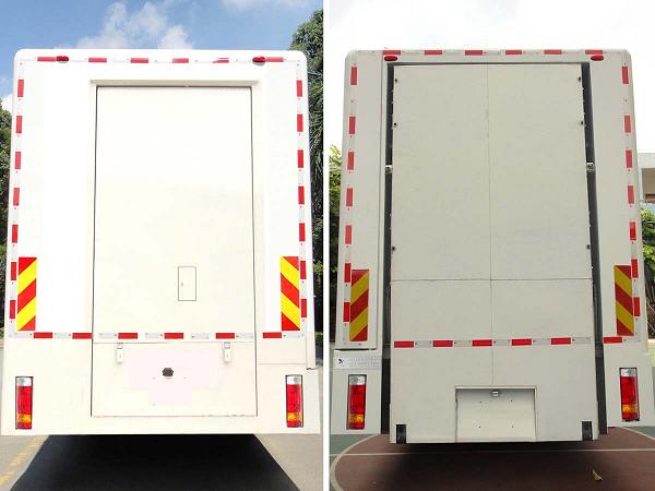 | 备注 | 车厢舞台部分关闭时,顶部封闭。可根据用户要求选装导流罩,LED屏,后部可选装后翻门,后翻尾板或不开后门的车厢。该车不选装LED屏时整备质量为14395kg、载重量为995kg。侧防护和后防护均采用裙板结构,材料为方管50×30×1.5和厚1.2钢板,材质Q325A,连接方式为焊接固定,后防护裙板离地高度510mm。该车安装具有卫星定位功能的行使记录仪。ABS系统型号:CM4XL,生产厂家:长春科密汽车制动有限公司。发动机净功率值:BF4M2012-16E51发动机为110kW,CA4DK1-18E51发动机136kW,CA4DH1-16E51发动机为118kW。 | ||