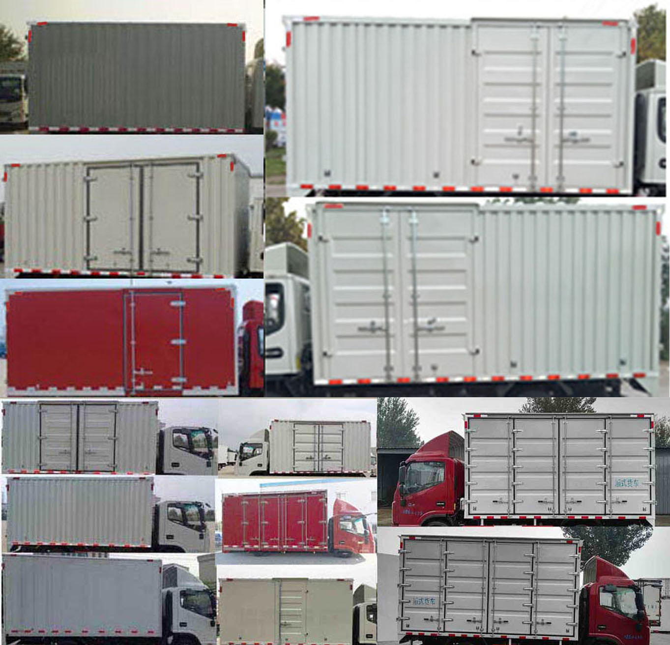 | 备注 | 1.车厢顶部封闭不可开启,选装导流罩;2.选装右侧双开门,单开门货厢以及不开门货厢,货厢材料可选用瓦楞板,铁平板,铝平板,彩钢板;3.随底盘选装排半驾驶室,选装改前围面板,进气格栅,前保险杠,组合灯具,前雾灯,后视镜的驾驶室;4.该车仅采用WP3Q130E50,HFC4DE1-1D,HFC4DA1-2D,HFC4DF1-2D2,D25TCIE1,4B2-115C50发动机,对应的油耗申报值(L/100km)为12.2,12.5,12.3,12.2,12.2,12.1,12.2;5.侧面及后下部防护装置材料为Q235,连接方式为螺栓连接,后部防护装置断面尺寸(长×宽):120mm×60mm,离地高度为480mm.6.ABS控制器厂家/型号:广州科密汽车电子控制技术股份有限公司/CM4XL-4S/4K(4S/4M);7.选装液压尾板,尾板收起状态的水平长度为295mm,选装后部状态;7.选装侧防护,选装后防护,材料为Q235,选装后部防护装置断面尺寸(长×宽):120mm×60mm,离地高度为490mm;8.选装左右侧双开门货厢;9,选装货箱尾部三开门状态; | ||
