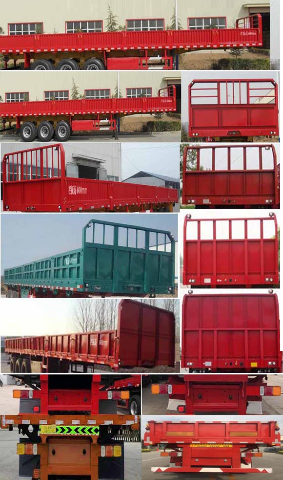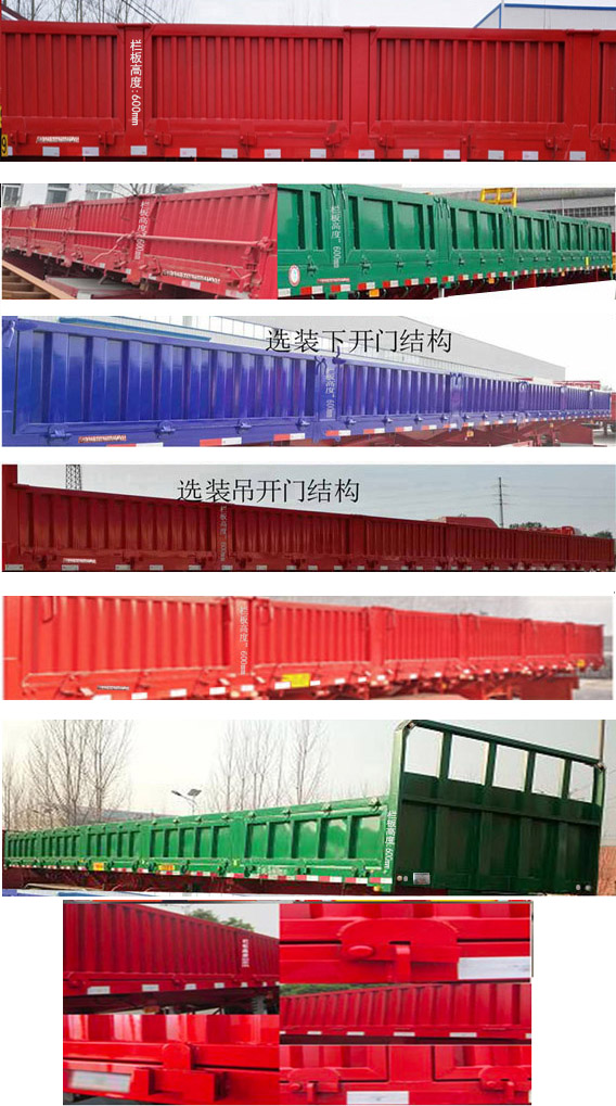 | 备注 | 该车为侧卸,选装前挡板样式和后部样式;侧面选装4开、5开、6开扇门;栏板选装竖瓦楞,方管平板,方管十字花样式;立柱可选内插,外插样式.选装吊开门和下开门,选装局部合页样式,选装大梁异形孔结构;车长(mm)/牵引销至车辆最前端的距离(mm)/轴距(mm)/后悬(mm)对应关系分别如下:13000/1100/6880+1310+1310/2400,13000/1400/6780+1310+1310/2200;12500/1200/6480+1310+1310/2200;12000/1200/6280+1310+1310/1900.ABS系统生产厂家梁山海纳电子科技发展有限公司,ABS型号为HNABS4S/4M;侧后防护装置材料均采用Q235B,与车辆连接方式均为电焊连接,后防离地高度为470mm,断面为140mmX50mm。 | ||