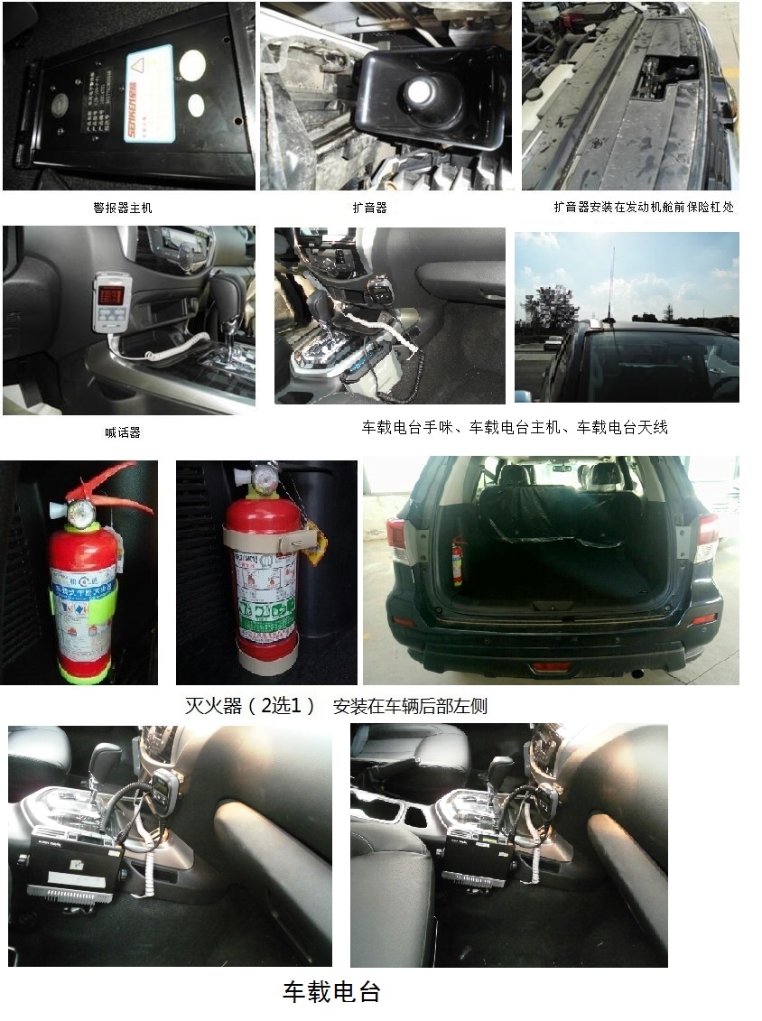 | 备注 | 车辆装备有指挥作业用的警报器和扩音器装置(包含警报器主机、扩音器和喊话器)、车载电台(包含车载电台手咪、车载电台主机和车载电台天线)、灭火器。选装不同规格前照灯、后视镜、侧转向灯、前摄像头、后摄像头。选装不带昼间行驶灯,不带尾翼。选装昼间行驶灯、前摄像头、后摄像头、尾翼、后保险杠护板、前泊车雷达时,总质量状态下前后轴荷为1024/1256。ABS型号/生产企业:5KSC/大陆泰密克汽车系统(上海)有限公司。发动机最大净功率为122kW。 | ||