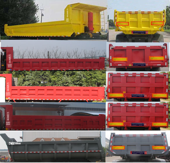 | 备注 | 该车卸货方式:后卸.选装货箱侧面样式,前部样式及翻转支架样式.牵引销中心到车辆前端距离/车长/轴距/后悬对应关系为(mm):750/9200/4680+1310+1310/1150;1050/9200/4380+1310+1310/1150;900/9200/4380+1310+1310/1300;1000/9600/4680+1310+1310/1300;1100/9600/4380+1310+1310/1500;1100/10000/4680+1310+1310/1600.ABS:型号:HNABS4S/4M;生产厂家:梁山海纳电子科技发展有限公司.二,防护:防护材料均采用Q235B,与车辆连接方式为焊接, 后防:离地高度为530mm,断面为140mmx60mm. | ||