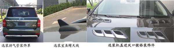 备注 | 选装多种轮辋,选装行李架、迎宾踏板,选装天窗、排气管尾管装饰罩、鲨鱼鳍天线、机盖进风口镀铬装饰件。ABS型号:B80A,生产企业:TRW。发动机最大净功率:245Kw。 |