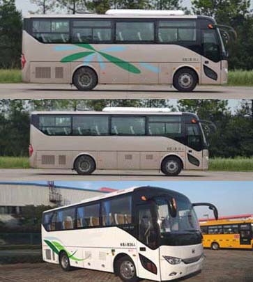 | 备注 | 1.该车可取消空调,对应的车高为3285mm;2.车身两侧至少各装备1个外推式侧窗,其余侧窗可选择封闭式或局部推拉式结构,乘客门玻璃可选择推拉式;3.车身左侧设置应急门;4.车内可选装饮水机等设施;5.ABS系统生产厂家/型号:广州市科密汽车制动技术开发有限公司/CM4XL-4S/4M;6.该车安装具有卫星定位功能的行驶记录仪;5.发动机最大净功率:146kW(YC6J210N-52);6.安装限速装置,限速100km/h。 | ||
