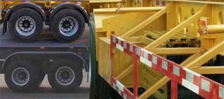 | 备注 | 该车用于运输40英尺集装箱或非危险品罐式集装箱,集装箱运输半挂车牵引销处车架总高度选装140,150,160,180,200mm,该车车身中部选装加强横梁及锁头,选装前部导向块,选装各种挡泥板,侧面及后下部防护装置所用材料材质为:Q235,均采用焊接连接,后部防护装置断面尺寸宽高(mm)50×140,离地高度:500mm,ABS系统控制器型号CM2XL-4S/2K生产厂家为:广州市科密汽车制动技术开发有限公司。大架打孔翻边已获国家专利专利号:ZL201520024006.2,已安装尾部标识板,型号为:CWB-2,生产厂家为:常州华日升反光材料股份有限公司。 | ||