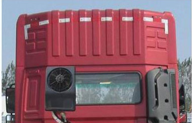 | 备注 | 选装普通驾驶室,带导流罩时高度为3710mm,不带时高度为3040mm;选装高顶驾驶室,带导流罩及侧导风板时高度为3710mm,不带时高度为3610mm;选装高顶驾驶室顶置气喇叭,高度为3765mm。选装保险杠。选装气瓶保护罩外观样式。可不选装车架侧面的气瓶,可不选装驾驶室后部的气瓶或仅选装四个气瓶,可不选装气瓶保护罩。驾驶室准乘人数与鞍座最大允许载质量参数一一对应;轴距与后悬参数一一对应。整备质量9730(kg)对应半挂车鞍座最大允许载质量为15140(kg)(2人)和15075(kg)(3人),对应准托挂车总质量39100(kg);整备质量10700(kg)对应半挂车鞍座最大允许载质量为14170(kg)(2人)和14105(kg)(3人),对应准托挂车总质量38100(kg)。发动机T10.34-50的净功率为248kW;发动机T12.38-50的净功率为275kW;发动机T12.42-50的净功率为305kW;选装MT13.36-50发动机时,净功率为262kW;选装MT13.40-50发动机时,净功率为291kW;选装MT13.43-50发动机时,净功率为313kW。选装T12.38-50、T12.42-50、MT13.36-50、MT13.40-50和MT13.43-50发动机时,消声器及储气筒位于车辆右侧。ABS系统型号为4460046300,生产企业为威伯科汽车控制系统(中国)有限公司。安装具有卫星定位功能的行驶记录仪。 | ||