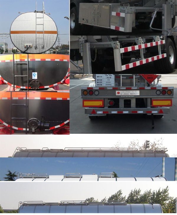 | 备注 | 该车罐体有效容积为43立方米,罐体外形尺寸(长×宽×高(前/后))mm:外罐尺寸11846×2484×2064/2214,裙蕹叽11740×2382×1962/2112(保温层厚度50mm);运输介质:石油原油,煤焦油,对应的介质密度:800,800千克/立方米,类项号为3;外蒙皮可选用不锈钢板,镀锌板,彩涂板,玻璃钢,铝合金板;选装爬梯安装个数和位置,选装空气悬挂,挡泥板样式,灌顶护栏样式,罐体工具箱及防护样式,卸料阀门箱的位置可在右侧、左侧或左右两侧;选装后封头排污口带法兰或阀门样式;选装轻型行走机构时整备质量为6800kg,对应额定载质量33200kg,ABS系统生产厂家:广州市科密汽车制动技术开发有限公司,型号:CM2XL-4S/2M;侧防护装置所用材料材质为6061 T6铝合金,与车辆用螺栓连接,后防护材料为5083铝合金,与车辆用螺栓连接,后部防护装置的断面尺寸(mm)为150×50,离地高度为:500mm,采用适用于牵引危险品运输半挂车的牵引车. | ||