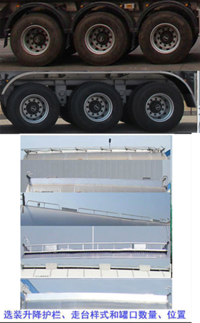 | 备注 | 有效容积36.79立方米,运输介质:二甲苯,苯,丙醇,低温煤焦油,原油(石油),丁醇,异丙醇,乙醇,异丁醛,甲苯,丙酮,丁醚,乙醚,燃料油,渣油,煤焦油,溶剂油,石脑油(化工轻油); 密度分别为:(876,874,803,850,780,808,790,789,794,850,790,788,773,820,850,850,780,760)千克/立方米;罐体外型尺寸(长×直径(前端/后端))mm:10500×2180/2380;选装轻型行走机构时整备质量为8800kg,对应载质量为31200kg;ABS生产厂家:广州瑞立科密汽车电子股份有限公司,威伯科汽车控制系统(中国)有限公司;ABS系统控制器型号:CM2XL-4S/2K(4S/2M),4005000810;侧面及后下部防护装置所用材料:Q235;侧防护及后防护连接方式:螺栓连接,后防护断面尺寸为120×68mm,离地高度为520mm;顶部可为挡水槽式也可为走台式;选装爬梯的安装个数和位置;工具箱左右侧可选装;选装轮罩样式;选装罐盖个数及位置;选装阀门箱位置及个数;采用适用于牵引危险品运输半挂车的牵引车;危险货物类项号为:3.运送危险货物车辆的类型为FL.选装空气悬架. | ||