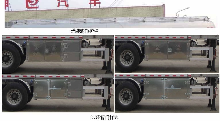 | 备注 | 该车型为非危化品运输车,罐体有效容积:33.6立方米,介质:压裂液或洗井液(乙二醇溶液),密度均为:1.0吨/立方米;罐体尺寸:长10500mm,长轴2400mm,短轴1700mm;当整车长为11700mm时,罐体尺寸:长11300mm,长轴2300mm,短轴1650mm;该车型选装空气悬架及挡泥板,选装罐顶护栏,选装箱门样式;ABS生产厂家:威伯科汽车控制系统(中国)有限公司,型号:4005000810 4S2M;克诺尔商用车系统企业管理(上海)有限公司,型号:K068353XXX;防护材料均采用Q235B,侧、后防护均用螺栓连接,后部防护装置断面尺寸(宽×高)80×150(mm),后部防护离地高度:500mm. | ||