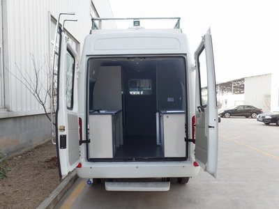 | 备注 | 车内设置工作台,设备柜,工具柜,照明供电系统等,主要用于流动宣传,产品展示,维修咨询服务等使用。车顶选装工作平台,防护围栏及场地照明灯,选装顶置空调,升降照明设备,LED显示屏,监视器,喇叭等。选装两侧车窗翼开启式活动门或卷帘门,选装侧开门,选装小发电机组舱门或工具舱门。选装侧、后车窗部分或全部盲窗。选装后部爬梯,倒车雷达等。随原整车选装中顶,电动前开门,侧拉门,胶条玻璃窗,后行李门,后上车踏板,三截式保险杠前围外形及部分灯具等。ABS系统控制器型号:BOSCH ABS8,生产企业:博世汽车部件(苏州)有限公司。该车发动机最大净功率93kW,105kW。 | ||