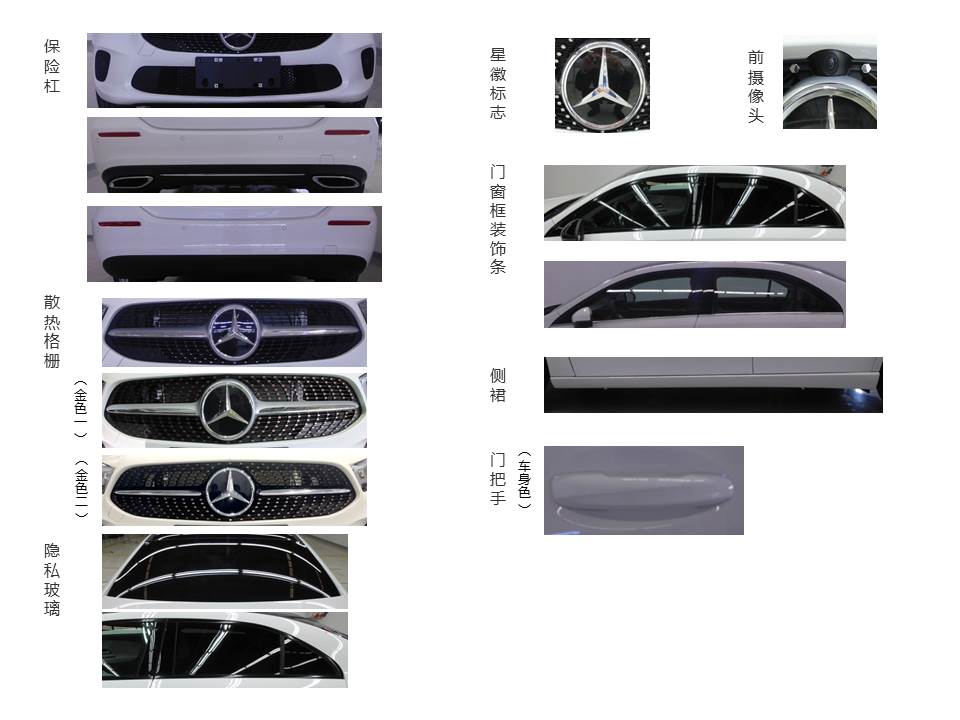 | 备注 | 发动机净功率为100kW。选装前保险杠,后保险杠,前照灯,后组合灯,散热格栅,隐私玻璃,门把手,外后视镜,门窗框装饰条,侧裙,星徽标志,发动机罩,前摄像头。ABS系统型号:ESP HD Plus,ABS系统生产厂:博世汽车部件(苏州)有限公司。 | ||