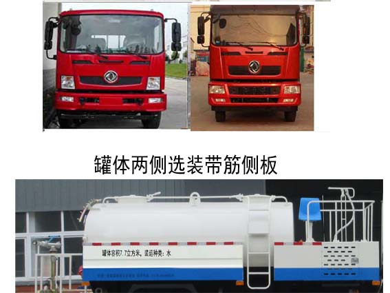 | 备注 | 1.该车随底盘选装灯具保险杠等新风格;罐体两侧选装带筋侧板.2.罐体有效容积:7.7立方米.介质:水,密度1000千克/立方米.罐体外形尺寸(长×长轴×短轴)(mm): 3400×2280×1450.整车长度9000mm含前伸1080mm.3,侧,后防护装置材料材质:Q235,侧防护焊接加螺栓连接,后防护焊接加螺栓连接,后部防护装置断面尺寸(宽×高)60×100(mm),后部防护离地高度:490mm.4.ABS型号为3631010-C2000,生产厂家为东科克诺尔商用车制动系统(十堰)有限公司. | ||