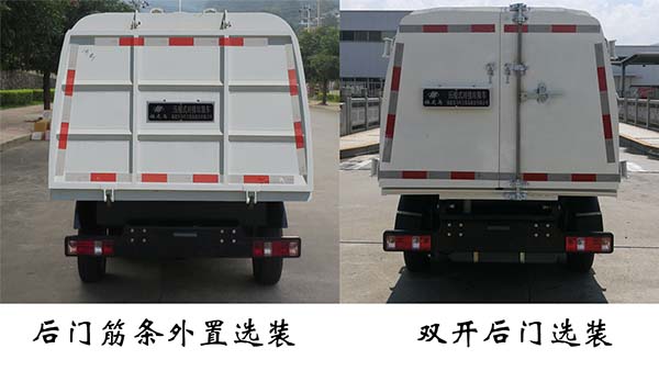 备注 | 仅选用2700mm轴距,自卸方式为后卸。 1.选装3种箱体:基础型箱体、整体式箱体和侧滑门箱体; 2.选装基础型和侧滑门箱体时整备质量1430kg,载质量1280kg; 3.选整体式箱体时整备质量1480kg,载质量1230kg; 4.以上箱体均可选装基础型后门、筋条外置式后门、双开门后门; 5. 仅选装双开门后门时车宽为1620mm; 6.随底盘选装前保险杠,引擎盖,中网,前雾灯,可不装前雾灯; 7.ABS型号:YF8;生产企业:武汉元丰汽车电控系统有限公司 |