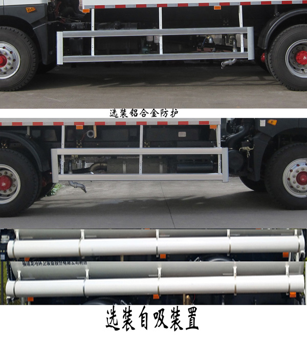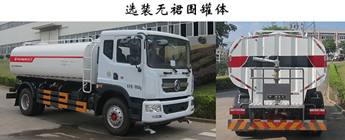 | 备注 | 仅选用4500mm轴距;标配罐体外形长轴×短轴×长度(mm):2300×1350×5000,罐体有效容积:10.71立方米;选配罐体外形长轴×短轴×长度(mm):2400×1450×4650,罐体有效容积:11.18立方米。该车有2种配置:A(标准配置)、B(选配罐体)。 各配置整备质量(kg)/载质量(kg)/整车长度(mm)/前悬(mm)/后悬(mm)/罐体有效容积(立方米)对应关系如下: 配置A:7600/10205/8130/1230/2400/10.71 配置B: 7150/10655/7780/1230/2050/11.18 侧防护及后部防护装置的材料材质:Q235A;连接方式为螺栓连接;后部防护装置的断面尺寸(宽×高)mm:60×230;后部防护装置的离地高度490mm。可选装:1、后上、后下喷雾装置; 2、加宽平台;3、下水道疏通装置;4、左右侧浇花装置;5、铝合金侧护栏;6、后部作业指示灯;7、小型喷洒系统。以上7种选装配置引起的重量及整车尺寸变化可以忽略不计。该车装备有罐体,水泵,管道系统等,用于清洗路面,对路面喷洒水降尘等作用。ABS型号: ABS 8,生产厂家:东科克诺尔商用车制动系统(十堰)有限公司 | ||
