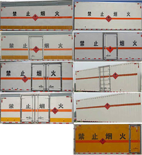 | 备注 | 厢体顶部封闭,不可开启;运输具有独立容器(瓶)包装的易燃气体:液化石油气,原油气,压缩天然气,乙炔,甲烷,乙烷,丙烷,丁烷,丙烯,丁烯,二甲醚,打火机或打火机加油器(装有易燃气体),压缩氢,类项号:2.1;运输具有独立容器(瓶)包装的非易燃无毒气体:液化气体(非易燃,充有氮,二氧化碳或空气),压缩氧(氮,空气,氦,氩,氖),二氧化碳,类项号2.2;该车为危险品货物运输车;厢体选装瓦楞板结构,厢体侧面选装开门型式及位置或不带侧开门,选装百叶窗,选装液压升降尾板(收起状态水平长度为290mm);仅采用前轮盘式制动器,前置排气管,子午线轮胎,限速装置的底盘,限速80km/h;该车安装具有卫星定位功能的行驶记录仪;ABS型号:APG3550500A4,生产厂家:浙江亚太机电股份有限公司;侧面防护及后下部防护装置材料材质:Q235,连接方式:焊接加螺栓连接;后下部防护装置断面尺寸(宽×高):50×100(mm),离地高度:440mm. | ||