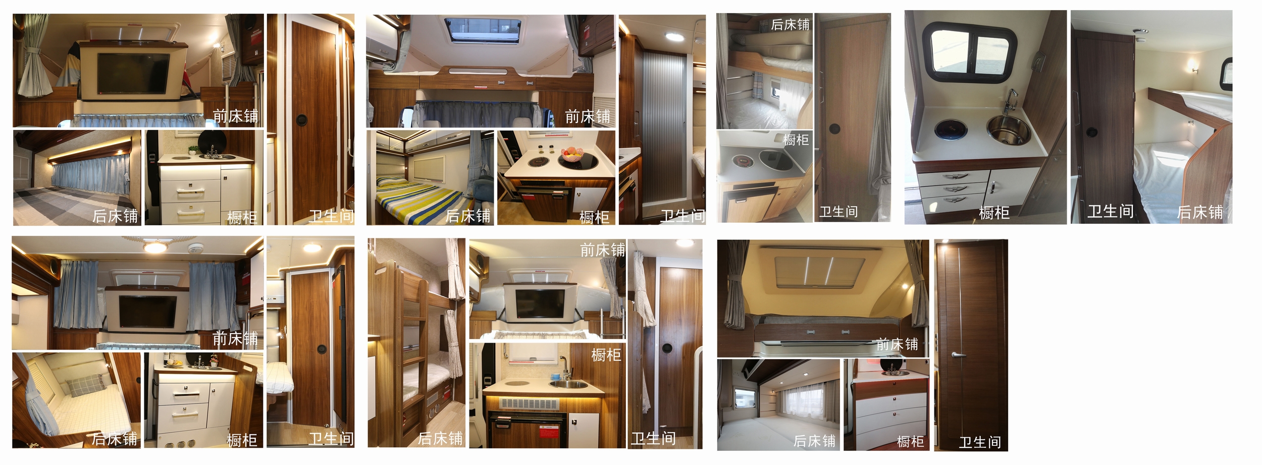 | 备注 | 1.该车装备有炊事设施、床、卫生间等设备,用于餐饮、休息和个人卫生处理;2.选装高配置时整备质量为4208kg,对应额定载客为2-4;选装中等配置时整备质量为4072kg,对应额定载客为2-6;选装标准配置时整备质量为3978kg,对应额定载客为2-6;选装简单配置时整备质量为3758kg,对应额定载客为2-6;3.选装不同的顶置空调可引起车身高度发生变化,对应整车高度为:3310mm,3260mm,3230mm,3140mm,可取消顶置空调安装,对应车高为3020mm;不选装遮阳棚时整车宽度2360mm,选装不同的单侧遮阳篷时整车宽度为2430mm或2470mm;选装双侧遮阳篷时整车宽度为2540mm;4.车顶可选装行李架、天窗、卫星天线、太阳能电池,右侧可选装扶手、不同风格乘客门,左右两侧均可选装遮阳篷;5.车身两侧或后部可选装封闭部分窗户、舱门;6.可选装后爬梯、自行车架、不同风格后杠造型;7.ABS系统控制器型号:BOSCH ABS9,ABS系统控制器生产企业:BOSCH公司;选装ESP;8.发动机最大净功率105kW(F1CE34818) | ||