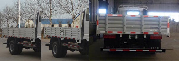 | 备注 | 选装前面罩,选装后视镜安装位置,选装不同结构货箱。防护装置材料材质为Q235,螺栓连接,后部防护装置断面尺寸为(mm):50×100,离地高度为500mm。ABS型号/厂家:CM4XL-4S/4K(4S/4M)/广州科密汽车电子控制技术股份有限公司,VIE ABS-II/浙江万安科技股份有限公司。CY4SK251、ISF3.8s5154、 CY4BK451、D30TCIE1和NGD3.0-CS5D发动机对应的油耗申报值分别为12.8L/100km,12.7L/100km,12.8L/100km,12.7L/100km,12.7L/100km。燃油箱与蓄电池的位置可互换。选装不同图形字标。 | ||